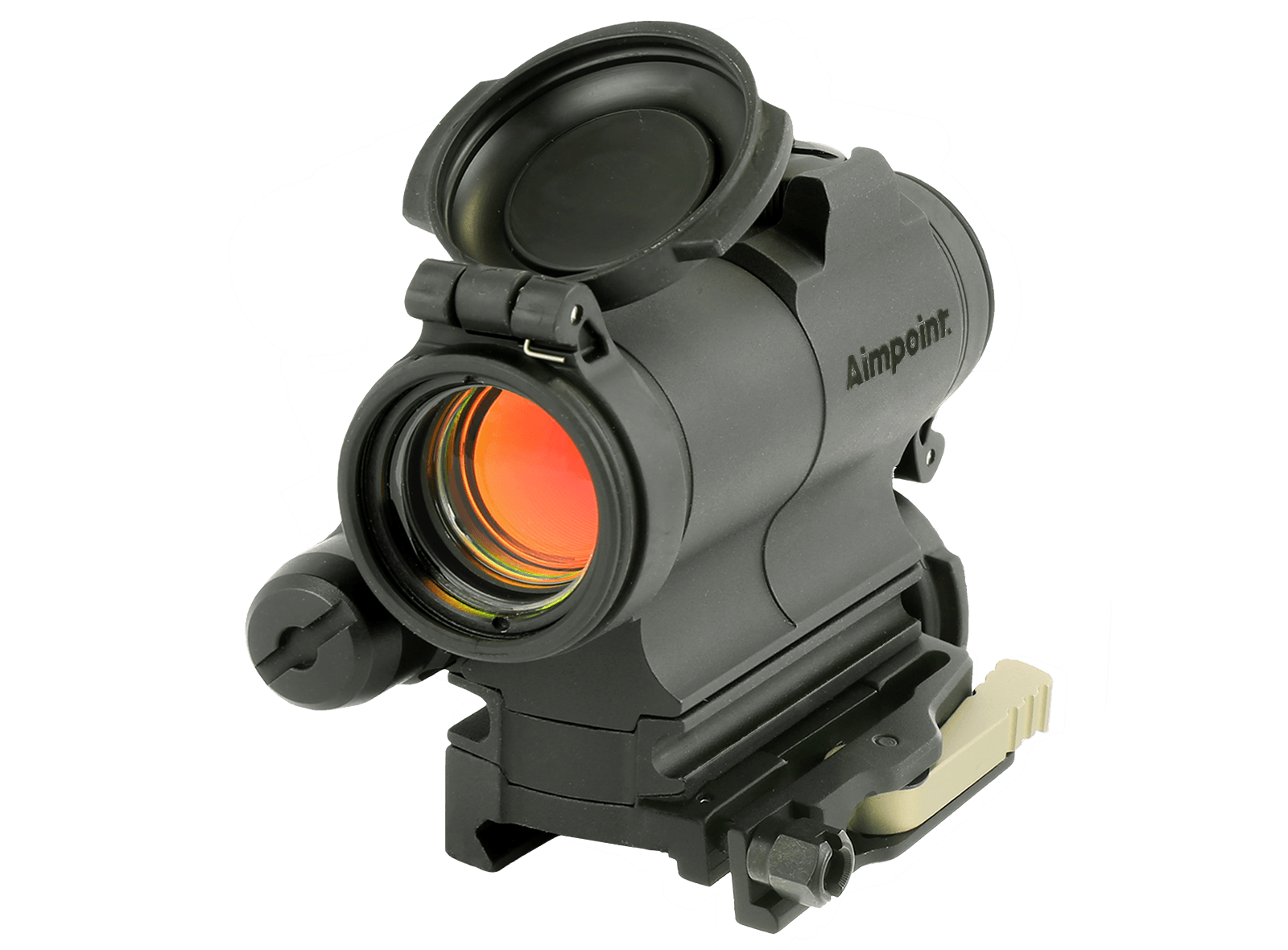 The CompM5s optic features recessed lenses with protective flip-up lens covers. The front cover is solid and rear is transparent – allowing the user to shoot with both eyes open while the lens caps are closed in an emergency situation. The sight housing is constructed of hard-anodized aluminum alloy for optimal protection of the electronic and optical components in all types of environmental conditions. Aimpoint 3XMag-1™ and 6XMag-1™ magnifiers and all generations of night vision devices pair perfectly with the CompM5s sight. The AR15 Ready configuration includes a spacer and LRP (Lever Release Picatinny) base that attaches to MIL-STD-1913 rails with a quick detach mechanism.