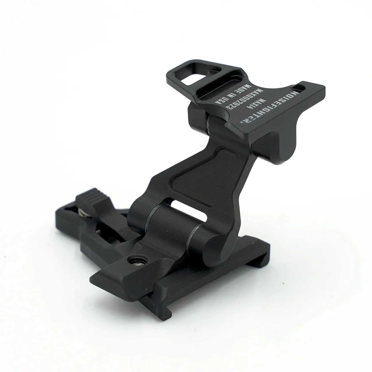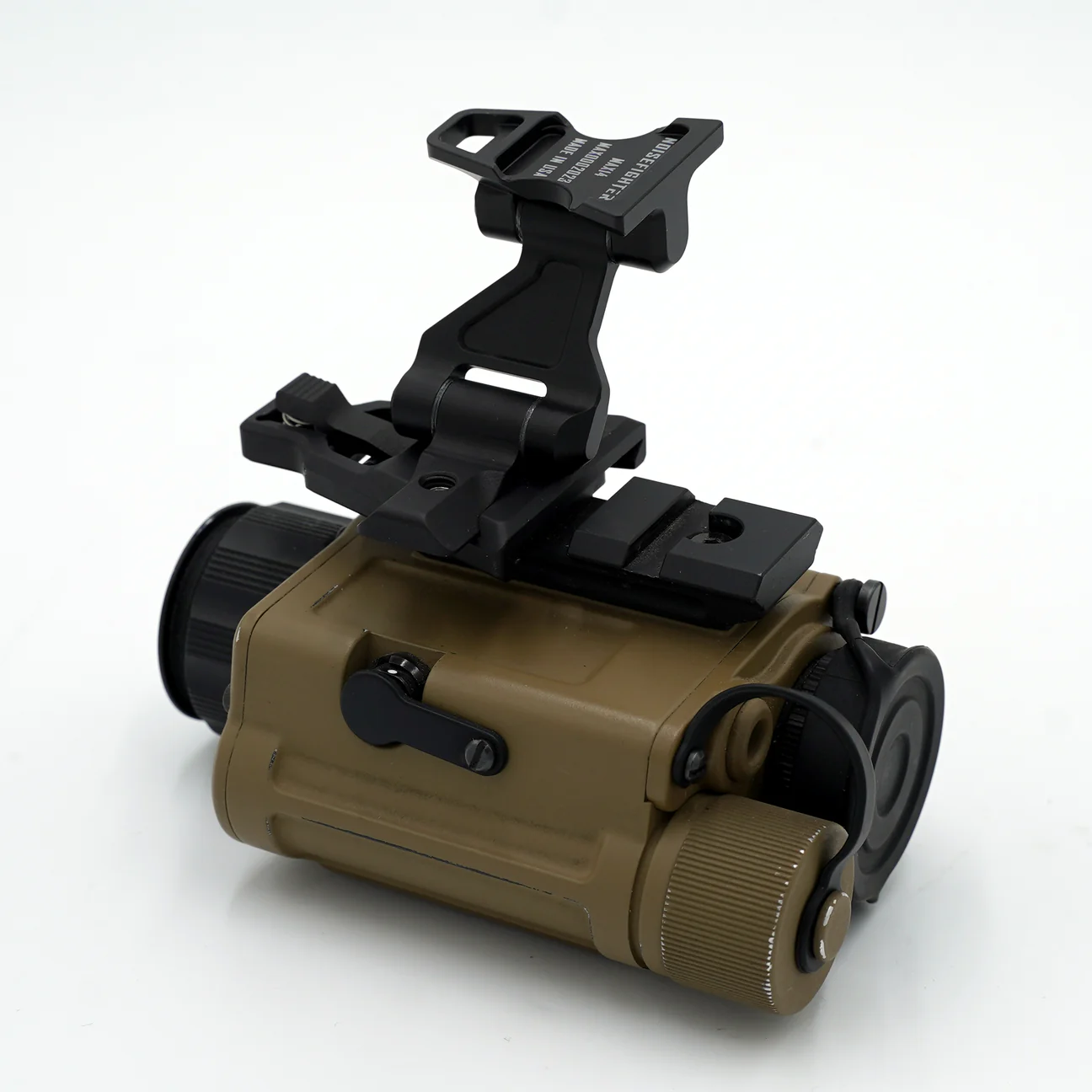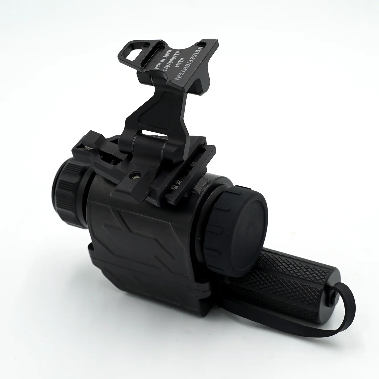 DMAX14™ is a rigid, incredibly lightweight, and all-metal night vision J-arm for dovetail-equipped thermal monoculars such as the Infiray RH25 v2 and Trijicon SkeetIRx. It includes a rotating knuckle which provides a tight stow against the helmet and also allows the monocular to be temporarily swung away from the head eye. At 1.4 oz total, it weighs less than a polymer milspec J-Arm, yet its structure is composed entirely of the highest-performing 7075-T6 aluminum alloy for industry-leading durability.