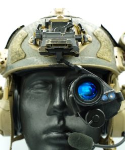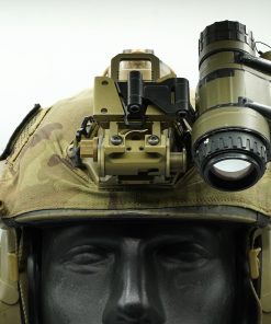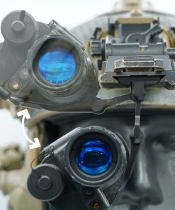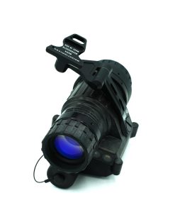 An intuitive, friction-based mechanism allows users to swing their monocular in front of either the left or right eye and perfectly adjust for inter-pupillary distance, while a slight rearward sweep of the inner arm helps position the monocular eyepiece closer to one’s eye and provides greater compatibility for those with larger helmets. A tether point is also featured on the rear to keep the entire system secure. Attach a monocular, snap the complete assembly into a dovetail-style helmet mount, like the Wilcox® G24, and enjoy. Introducing the new industry standard in night vision monocular mounting.