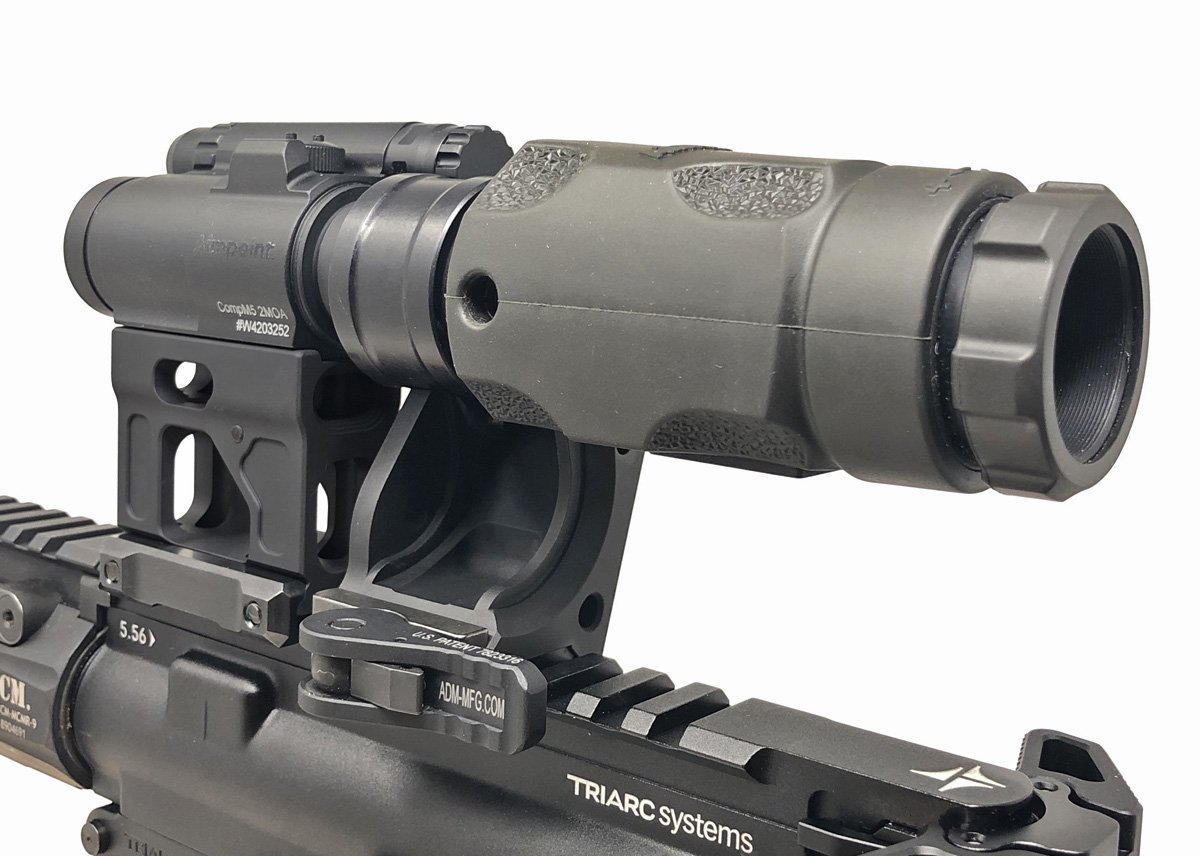 FAST™ FTC Magnifier Mounts feature the first ever Flip-To-Center (FTC) mechanism (patent-pending), providing stowage completely within the footprint of the weapon’s receiver while not occluding the host optic’s sight picture at all. This provides the most optic capability with the lowest profile during all modes of operation. The revolutionary FTC function completely solves the problem posed by legacy flip-to-side magnifier mounts (when disengaged, the magnifier hangs off the side of the gun, creating a major snag hazard). FAST™ FTC Magnifier Mounts completely eliminate this danger and utilize a force-to-overcome mechanism for rapid transition. Designed for Aimpoint® Magnifiers (3XMag-1, 3X-C) and some other 30mm magnifiers.